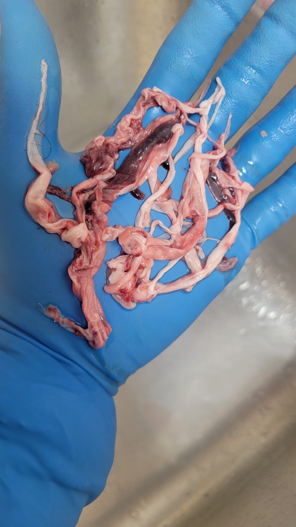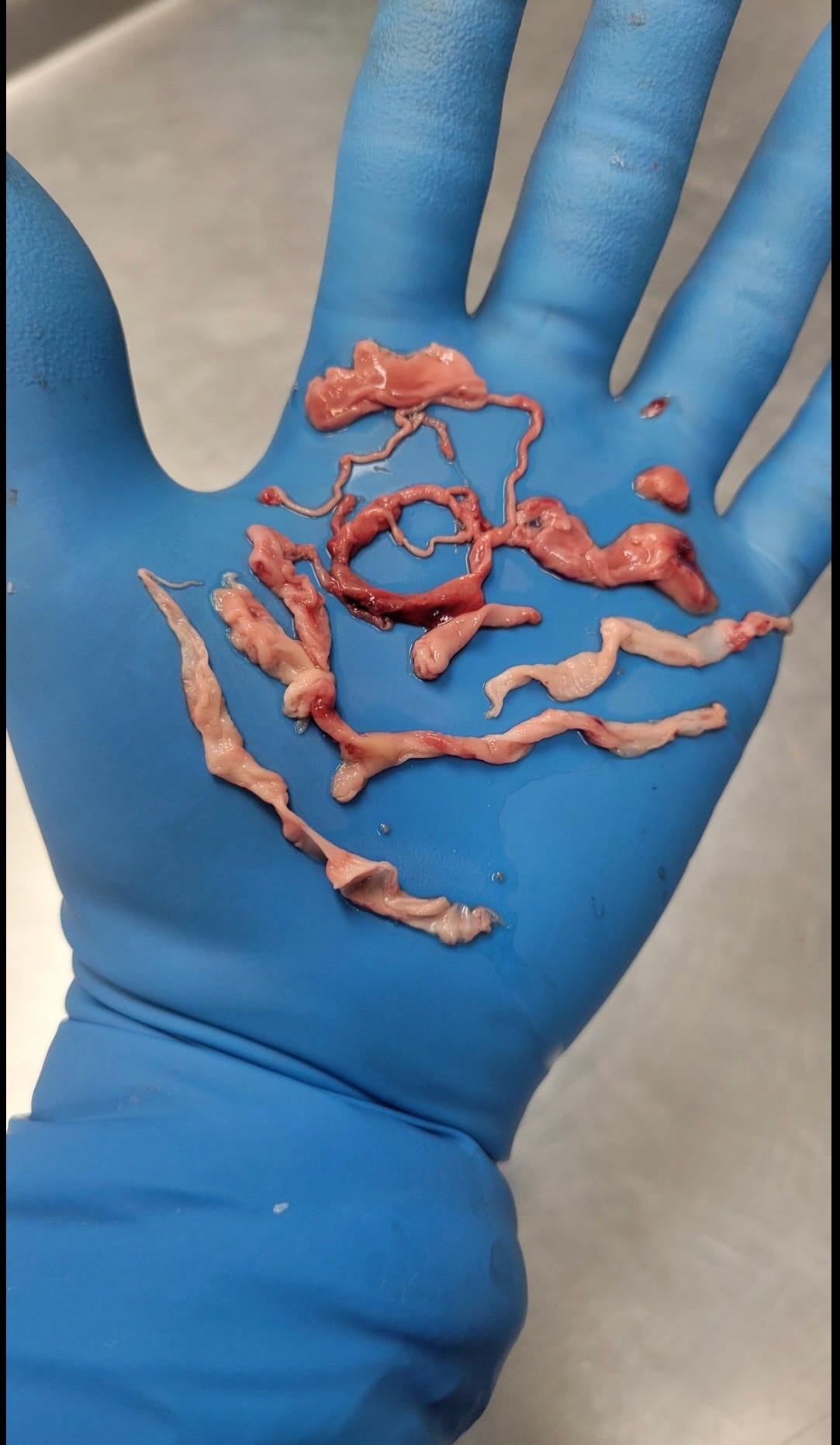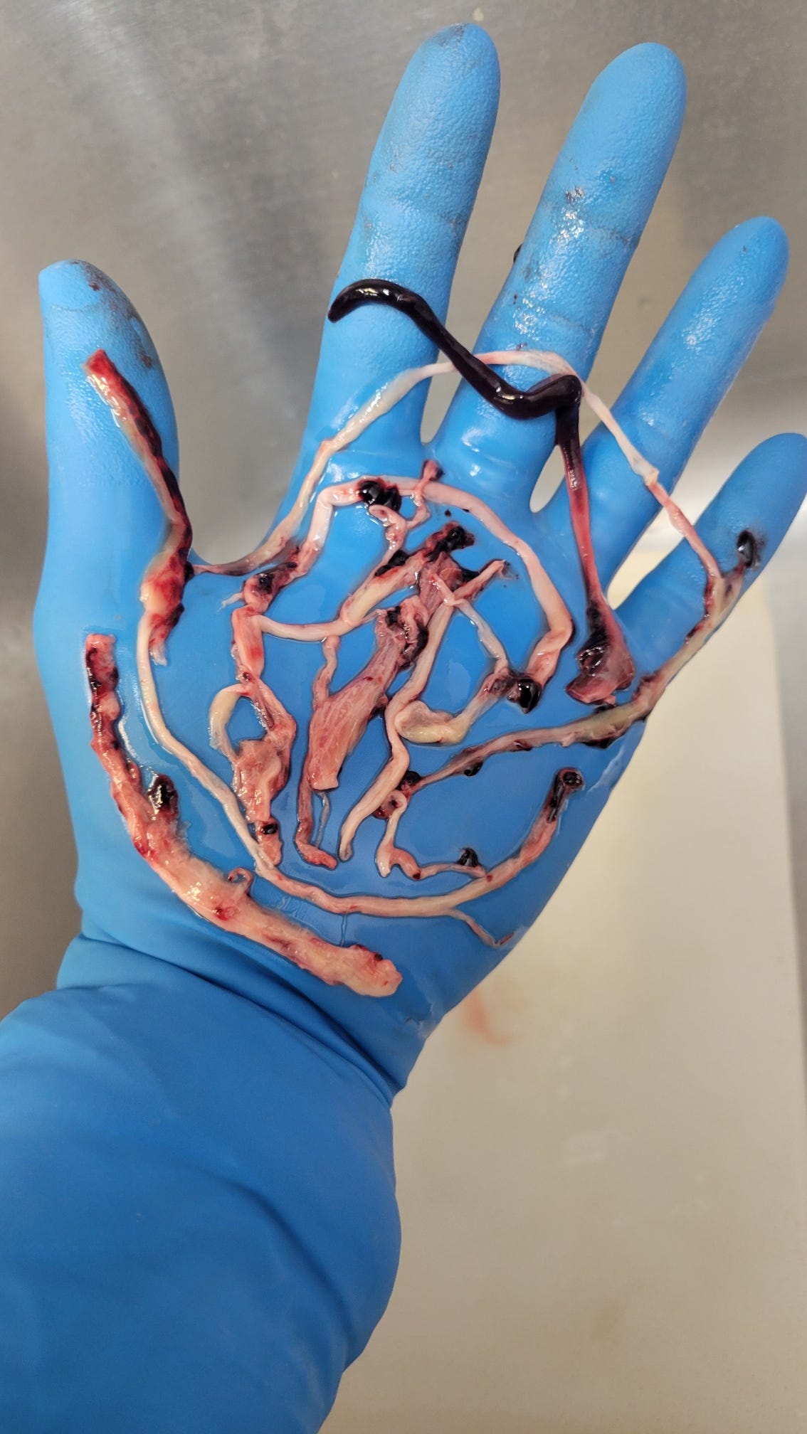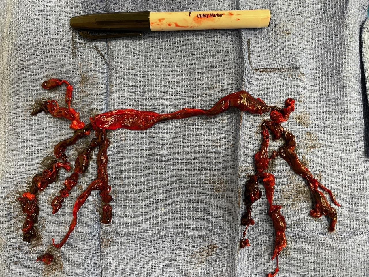 I know of one patient (in his 40’s) who lives local to me who was given a photo (below) of what they pulled out of his pulmonary (lung) arteries. He posted this photo on a blog about his experience. My guess is this patient didn’t ask if the doctor had seen them before, nor did the doctor tell him he hadn’t.
